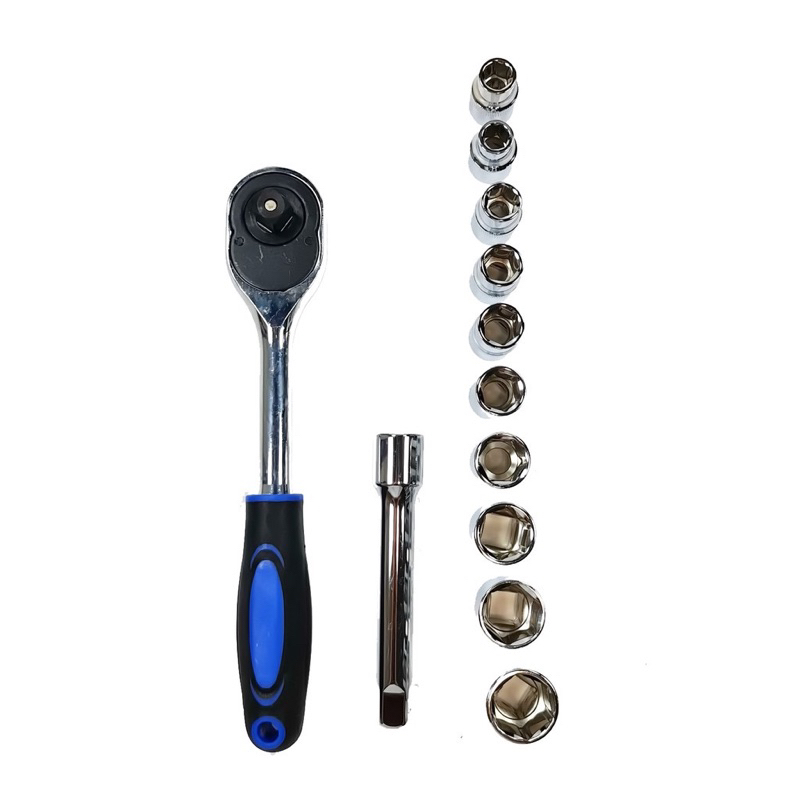 Kunci mata shock 1/2” set 12pcs + gagang kunci ratchet Edtron