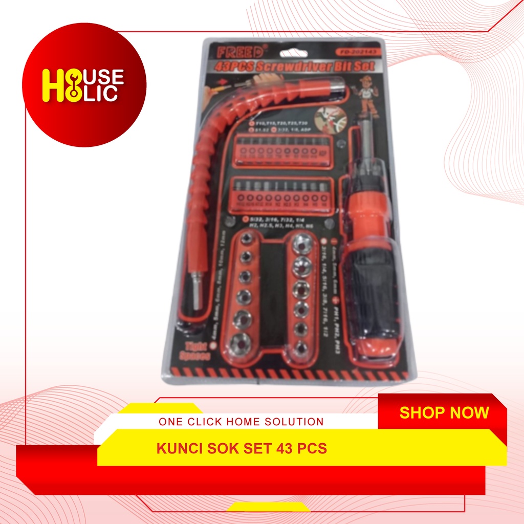 Kunci Obeng Sok Sock Shock Socket Set 43 Pcs Screwdriver Bit