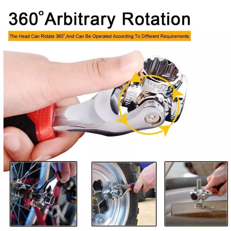 Kunci Pas Tiger Wrench ini menggunakan desain unik dimana kepala kunci pas dapat diputar dan digunakan sesuai dengan kebutuhan Anda. Dengan ini, Anda tidak perlu membeli berbagai macam kunci pas untuk jenis mur yang berbeda.