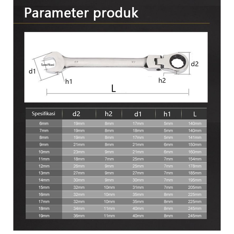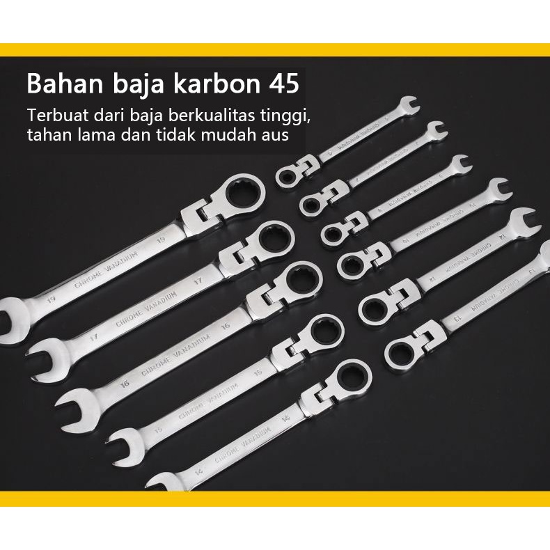 Detail Kunci Pas Ratchet Kombinasi Kepala Fleksibel Alat Ratchet Wrench penggunaan ganda