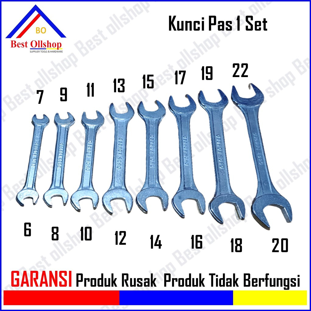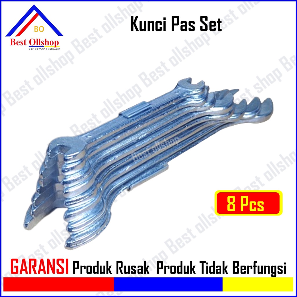 Kunci Pas Set 8 Pcs / Kunci Engkol Combination Wrench Spanner 6 mm - 22 mm Termurah