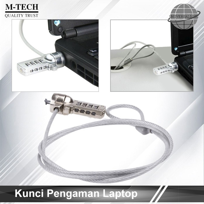 Alat ini adalah gembok untuk mengunci laptop Anda agar tidak dicuri. Sangat berguna jika Anda sering menggunakan laptop dikeramaian atau jika Anda ingin mendisplay laptop dikeramaian. Untuk dapat membuka kunci ini dibutuhkan kunci khusus sehingga tidak semua orang dapat membuka gembok ini.