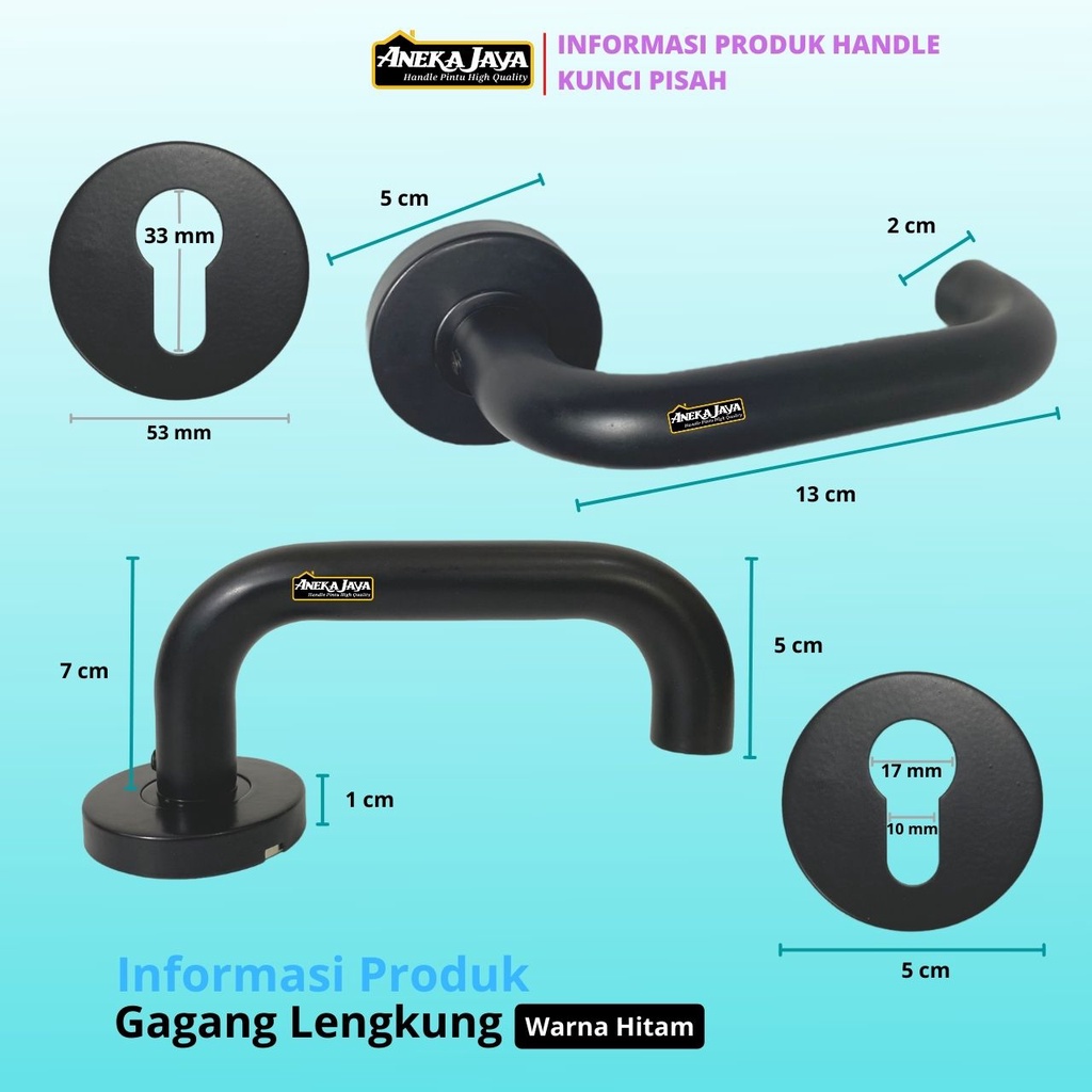 Kunci Pintu Misah Hitam Doff tersedia 2 Model - Bulat Lurus ( KODE 0013) - Bulat Lengkung ( KODE 0014)