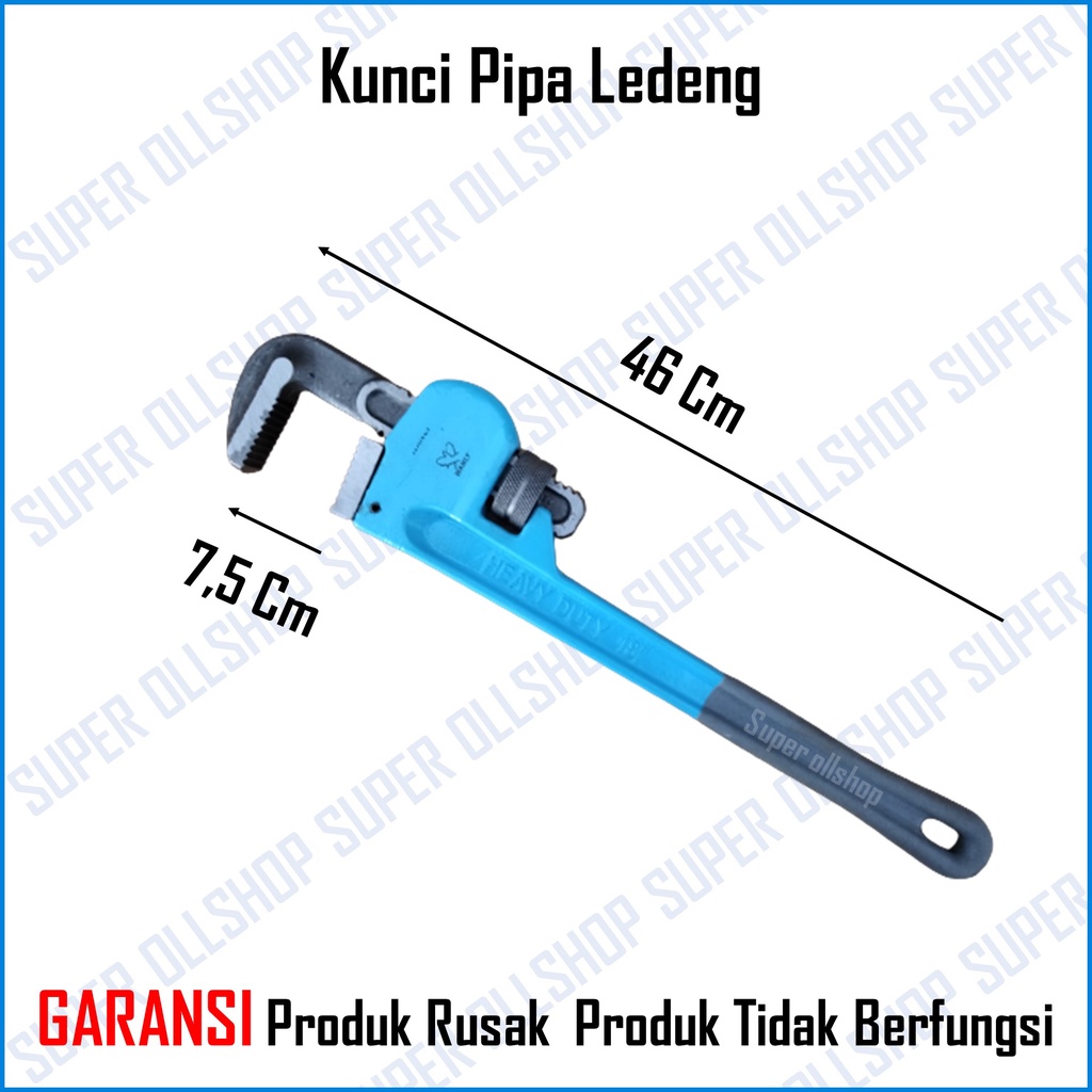 Kunci pipa ledeng dengan kualitas yg bagus dan kuat, Terbuat dari bahan besi pilihan sangat berguna untuk membongkar pipa air ledeng yg mampet, Fungsi utamanya adalah untuk reparasi, misalnya ketika ada kerusakan pada pipa ledeng ataupun ketika ada kerusakan pada mesin jet pump.