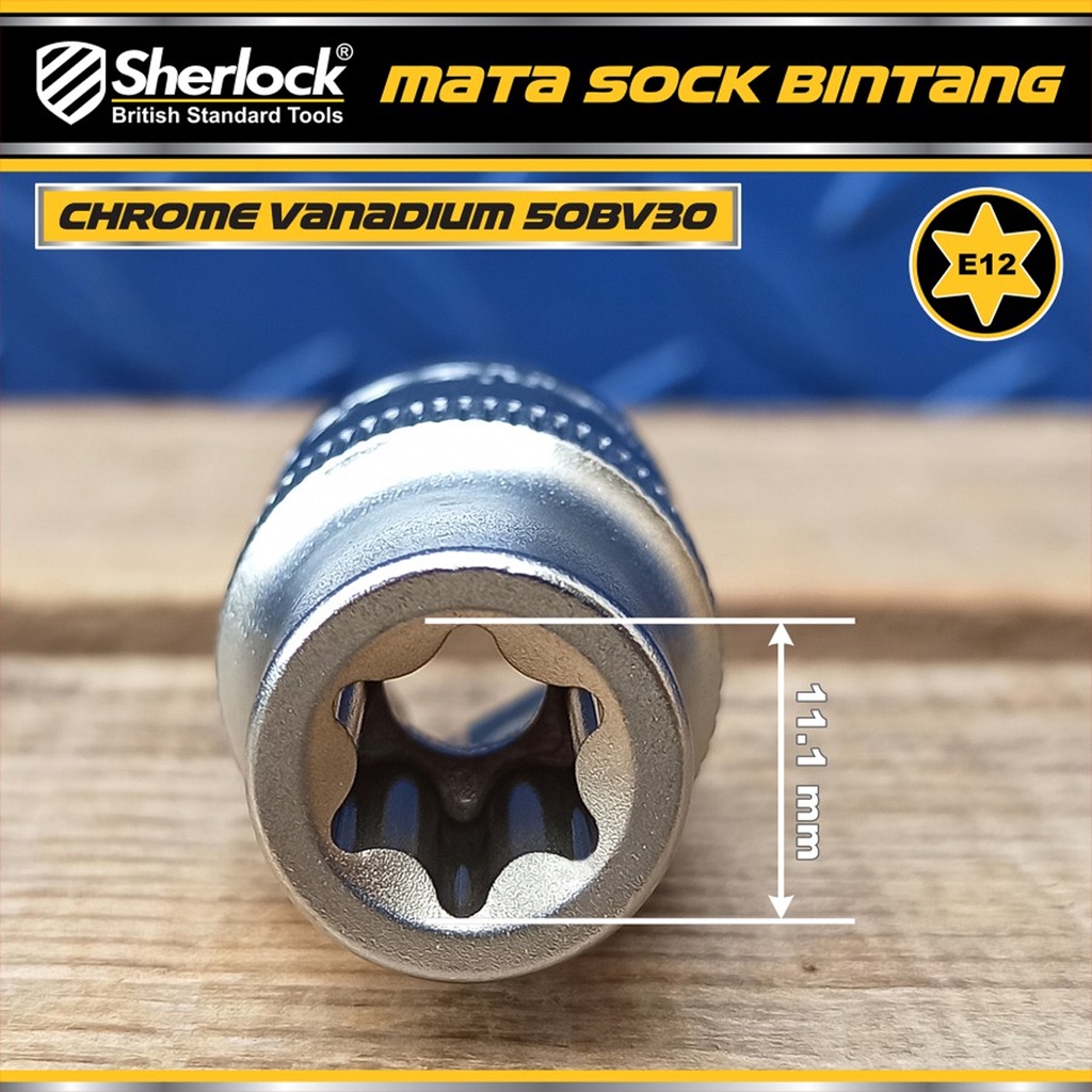 Detail Kunci Shock Bintang Sok E12 1/2 inch Drive Star Socket Sherlock