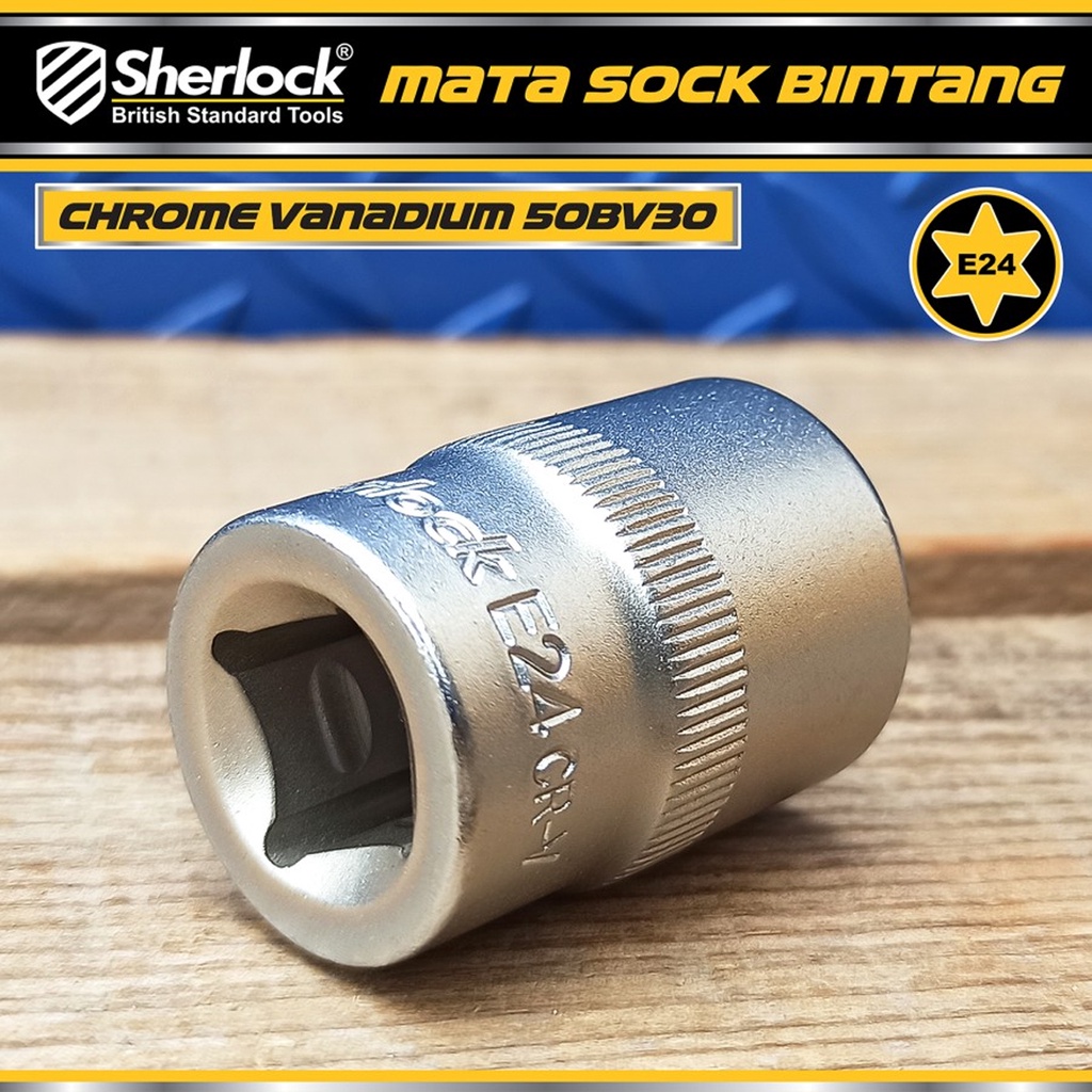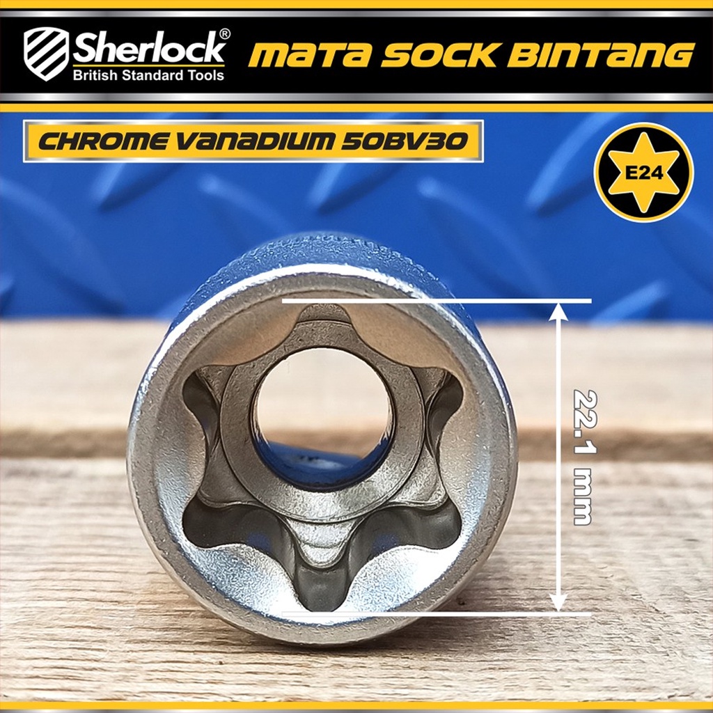 Detail Kunci Shock Bintang Sok E24 1/2 inch Drive Star Socket Sherlock