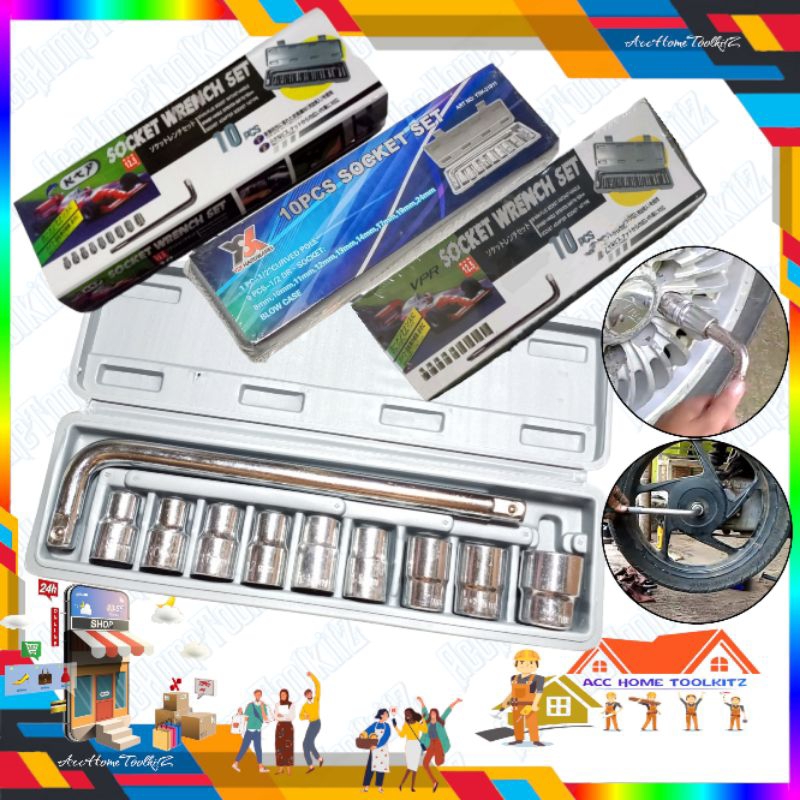 Kunci Sock Set 10Pcs Socket Wrench Set 1/2" Kunci Ban Mobil Motor Sepeda Mata Sok 8 , 10 , 11 , 12 , 13 , 14 , 17 , 19 , 24 mm