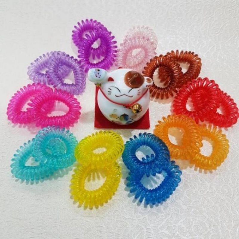 KUNCIR RAMBUT SPIRAL KUNCIR IKAT RAMBUT KABEL HITAM WARNA WARNI KARET IKAT RAMBUT SPIRAL KARET IKAT RAMBUT LABEL TELEPON KUNCIR RAMBUT