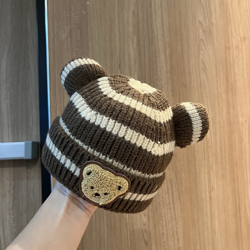 Detail Kupluk anak laki laki usia 6 bulan - 2 tahun kupluk lucu ala korea Motif GARIS BEAR