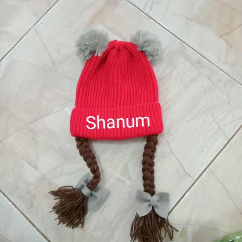 Detail KEPANG kupluk Anak Cwek , kupluk Rajut Kepang Gratis Bordir Nama,Kupluk Cewek Custom Nama