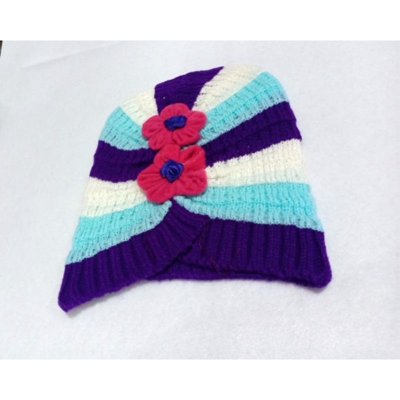 kupluk wanita anak motif bunga Tupluk rajut