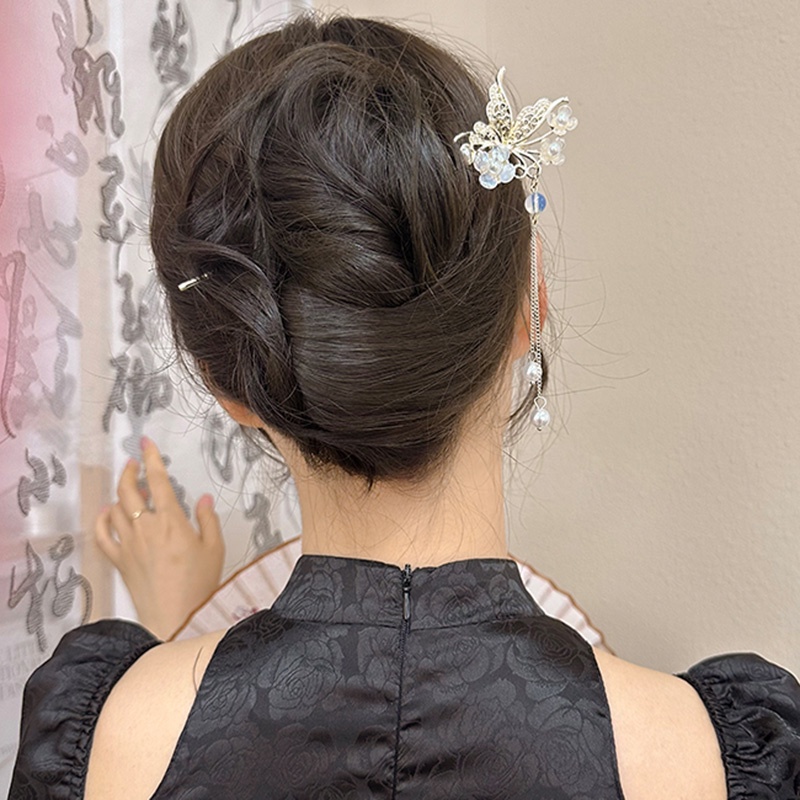 Aksesoris Fashion > Aksesoris Rambut > Aksesoris Rambut Lainnya > Kupu-kupu Rumbai Langkah Goyang Temperamen Sederhana Gaya Kuno Hanfu Cheongsam Gaya Cina Baru Jepit Rambut