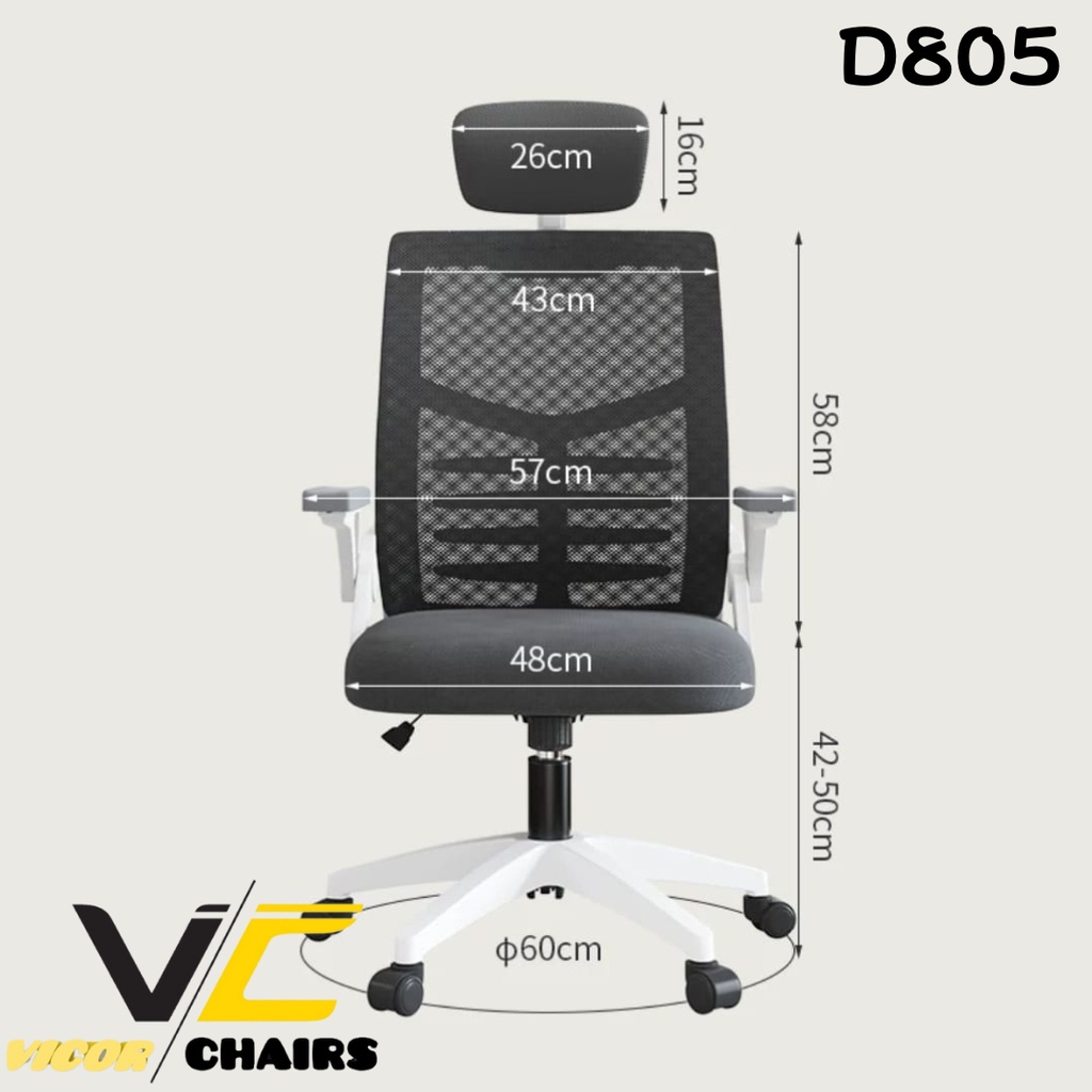Type D802 Ada headrest/sandaran kepala Sistem hidrolik (bisa naik dan turun) Arm rest/sandaran tangan. Sandaran no ayun Rotasi 360 derajat dengan dilengkapi roda Lebar dudukan 46x48cm Tinggi sandaran dari jok 68 cm Tinggi Jok dari Lantai kurang lebih (turun) 40 - (naik) 50 cm