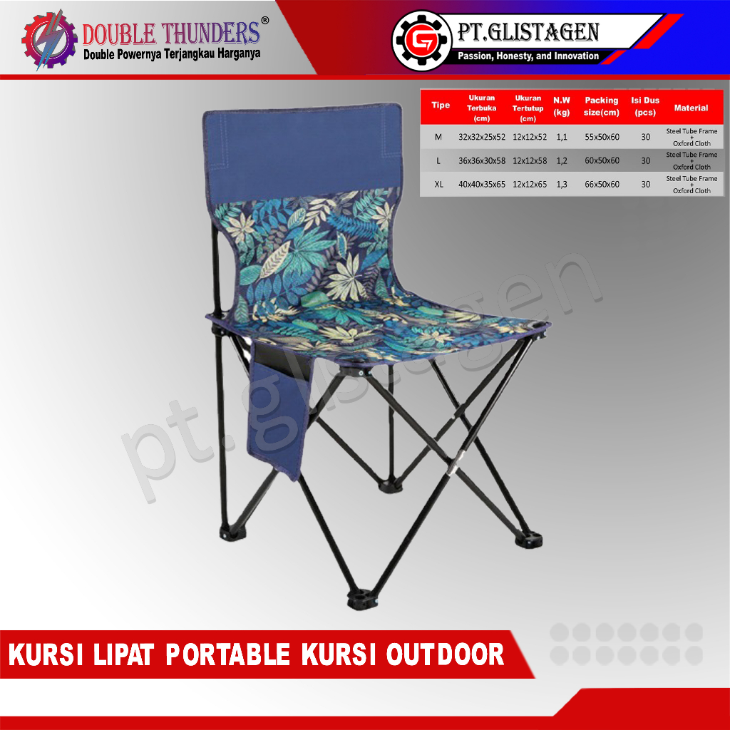 Kursi lipat yang memiliki bahan kuat, ringan, portable cocok digunakan untuk di dalam Ruangan maupun di luar Ruangan.