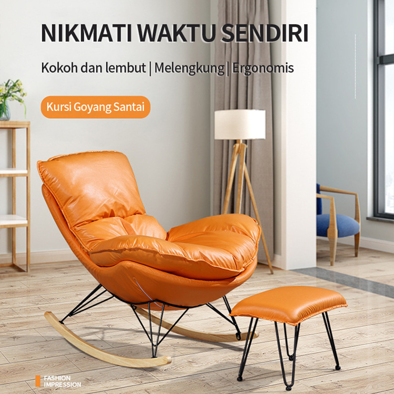 Detail Kursi Lounge Ayunan Spons Lembut dan Nyaman / Kursi Goyang Rekreasi Kamar Tidur Tambahkan Bantalan Kaki