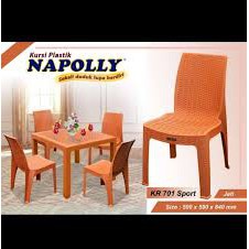 Kursi Rotan sitentis dengan sandaran Napolly KR-701 Sport DESKRIPSI : Size: 50x59x77cm Warna Jati baru Material plastik bagus,kuat,mudah dibersihkan dan awet