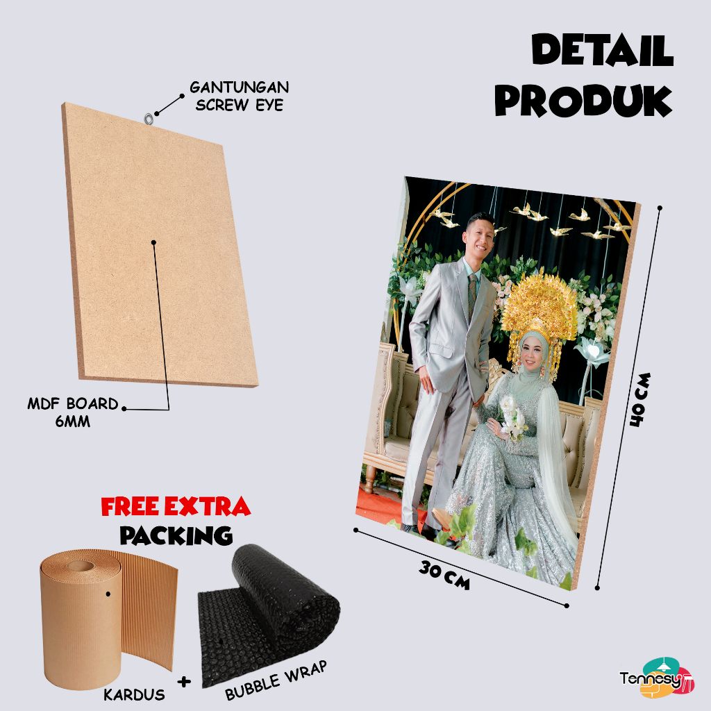 SPESIFIKASI : π Ukuran : 30x40cm π Bahan : MDF 6MM π Cetak : Photo Paper HD + Laminasi Glossy Mengkilat Anti Air π Finishing : Back & Edging Cat Pelindung Lembab & Anti Jamur π Lebih Bersih & Awet π Original Produsen Langsung