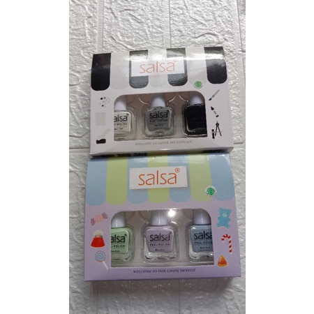 SALSA Peel Polish - Kutek Peel Off isi 3 yang dapat dikelupas dengan mudah. Tersedia dalam Set berisikan 3 pcs kutek peel off dengan varian warna yang cantik serta pigmented, cocok digunakan sehari-hari. SALSA Peel Polish dirancang dengan teknologi quick-dry sehingga cepat kering dan aman tidak merusak lapisan kuku.