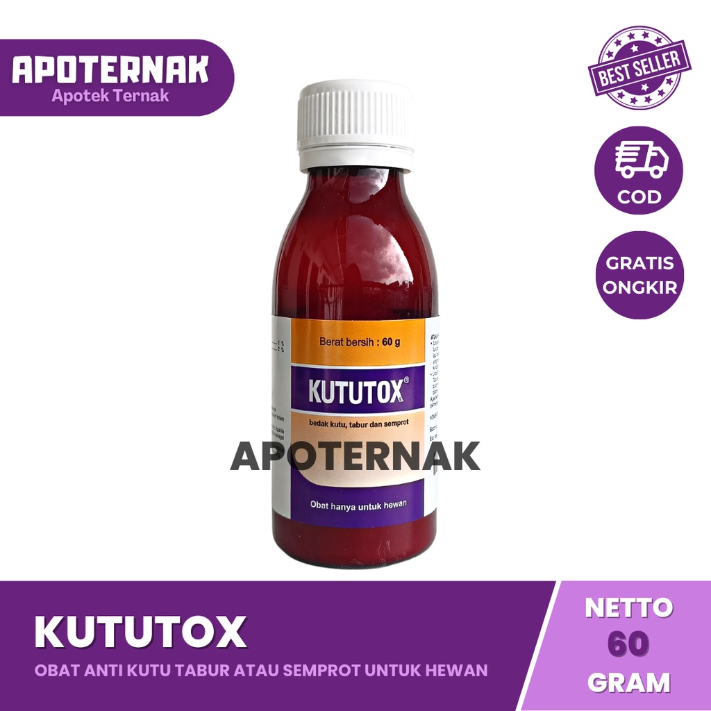 Hobi & Koleksi > Perawatan Kesehatan Hewan > Anti Kutu > KUTUTOX 60 gr | Obat Kutu Hewan Peliharaan | Anti Kutu tabur atau Semprot Untuk Anjing Kucing Sapi Kambing Domba & Kandang | Medion