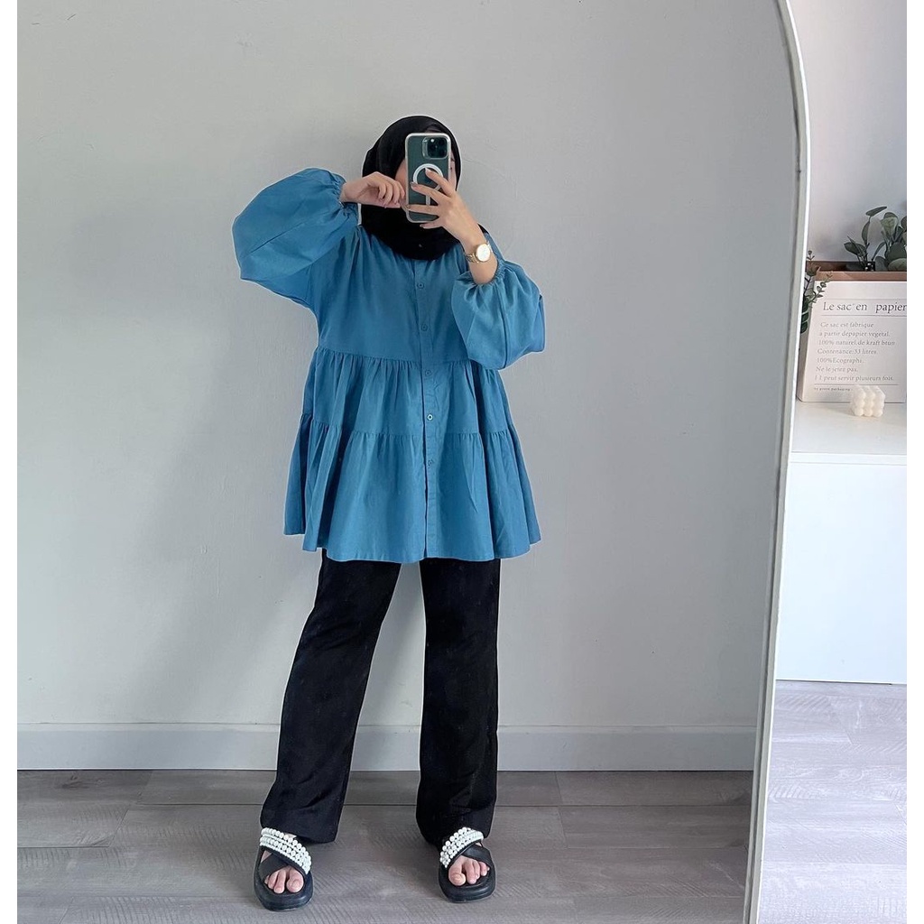 ๐ Matt : Katun Linen Dilengkapi Full Kancing Aktif Pergelangan Lengan Karet Model Ruffle