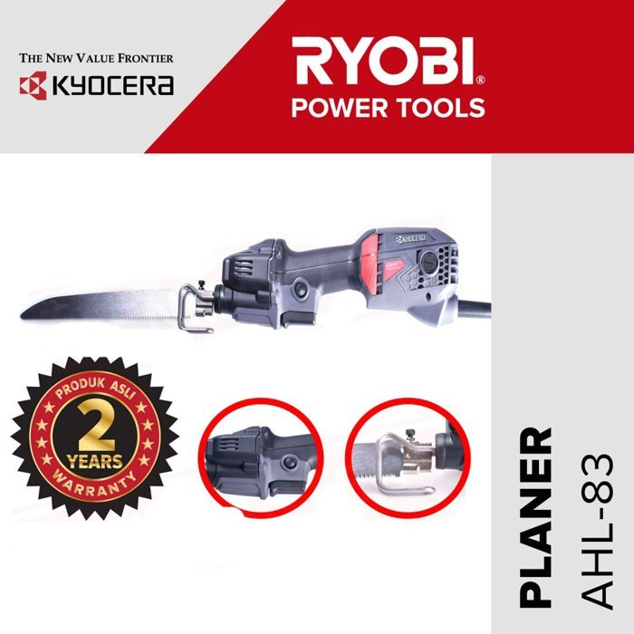 Spesifikasi : Input : 220-240W Strokes : 0=5000 min-1 Stroke length : 10 mmm Max. cutting capcity : 120mm (plastic pupe), 55mm (wood), 3.5mm (soft steel) Dimensions : 337 X 71 X 112 mm Weight : 1.4 Kg Ultra slim grip for use in hand to reach spaces with one hand Optimal weight balance reduce fatique with Kyocera's unique design Compact body enables superior maneuverability Various applications by using different changeable blades Ultra light weight (1.4 kg)