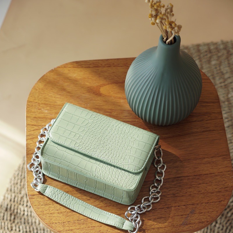 Warna: Mint & Hitam Super High quality, ada 2 strap: strap chain dan strap polos. bisa dijadikan shoulder bag atau sling bag Dimensi: 19x6x14 cm (PxLxT)