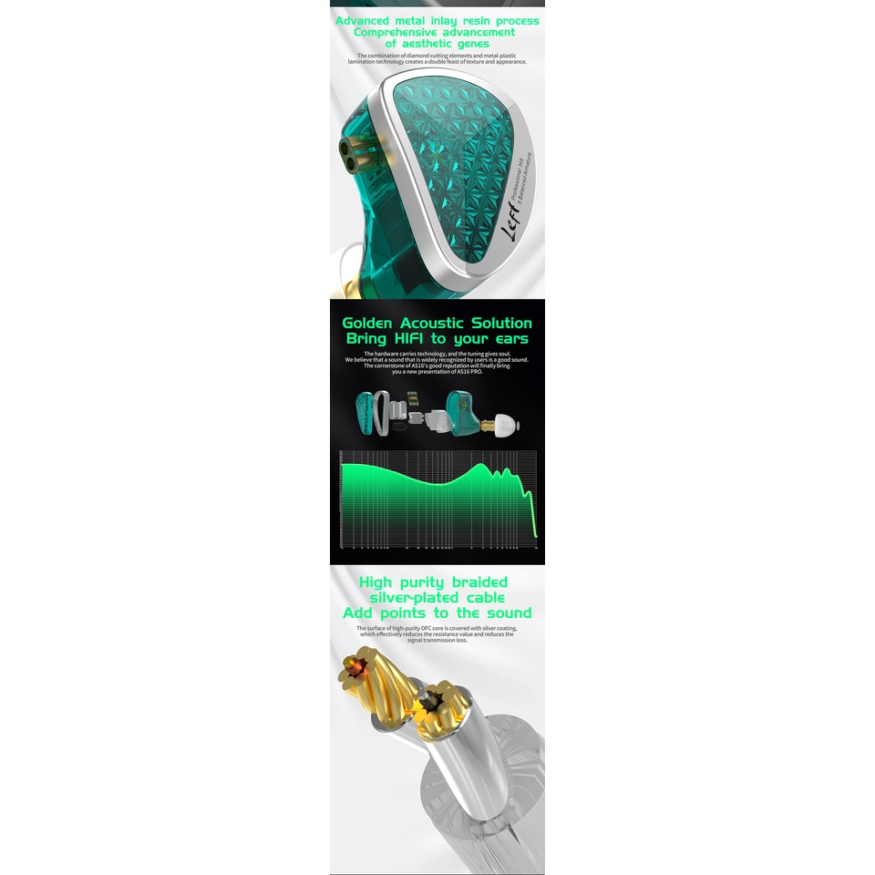 Detail Kz AS16 Pro 16BA Earphone In Ear HIFI 8 Balanced Armature Dengan Fitur Noise Canceling AS12 ZSX