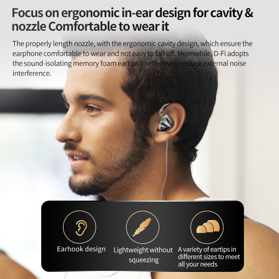 Kz D-Fi HiFi Logam Earphone 4-Level Sakelar Tuning yang Dapat Disesuaikan Headphone Jaringan Zobel Desain Sirkuit Headset