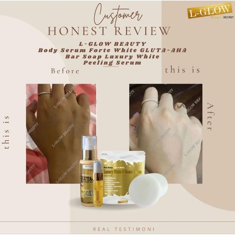 Detail L GLOW PAKET WHITENING PEMUTIH SELURUH TUBUH sabun blemish+peeling luxury+lotion aha