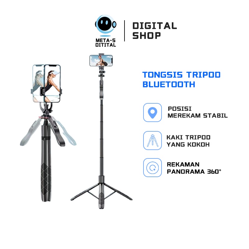 【Tiang aluminium yang premium】- terbuat dari paduan aluminium yang digunakan pada penerbangan, tripod ini ditingkatkan dengan kualitas tinggi dan dibuat tahan lama. Dilengkapi dengan remot Bluetooth untuk pengoperasian handsfree.