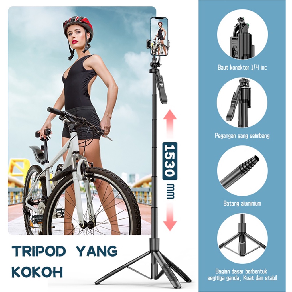 Detail L16 Tripod Bluetooth Selfie Stick Remote Tripod HP Kamera DSLR Tongsis 1530MM dengan 1/4 Adaptor