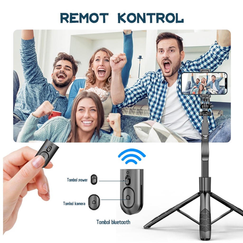 【Tiang aluminium yang premium】- terbuat dari paduan aluminium yang digunakan pada penerbangan, tripod ini ditingkatkan dengan kualitas tinggi dan dibuat tahan lama. Dilengkapi dengan remot Bluetooth untuk pengoperasian handsfree.