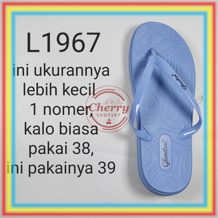 DETAIL PRODUK: Kode : L1967 Merk : Glanzton Bahan : Karet Warna : Biru, Cream,Hitam, Moka, Pink SIZE / PANJANG TELAPAK KAKI : 37 = 23cm 38 = 23,5cm 39 = 24cm 40 = 24,5cm 41 = 25cm