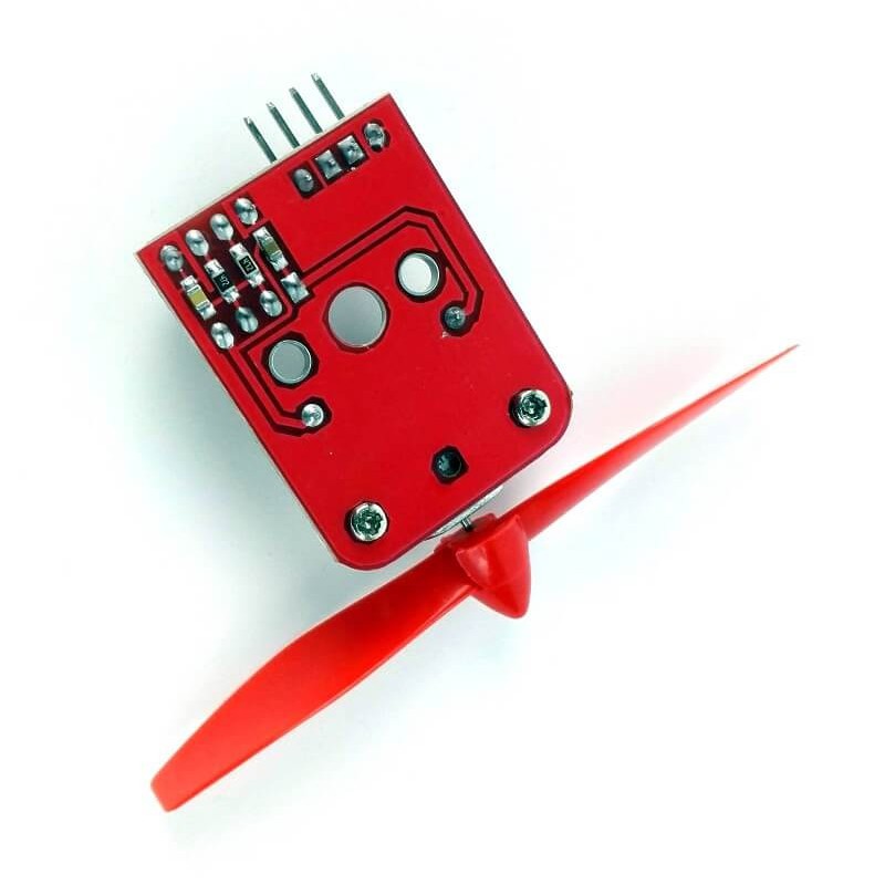 L9110 Fan Module 5V Compatible Arduino Deskripsi L9110 Fan Module 5V Compatible Arduino for robot pemadam pemadam lilin 100% Brand new and high quality; Designed for fire fighting robot and adopt 9110 H as the bridge drive Can be used with steering engine to control the wind direction Can control positive and negative going motion easily. High quality propeller,high efficiency Can be easily blow out the lighter flame(beyond 20 cm) Working Voltage: 5V Color: Red + white + black Size:Approx.34 x 26 x 12mm/1.33*1.02*0.47inch(excluding propeller) Propeller Diameter : Approx. 75mm / 2.95 inch