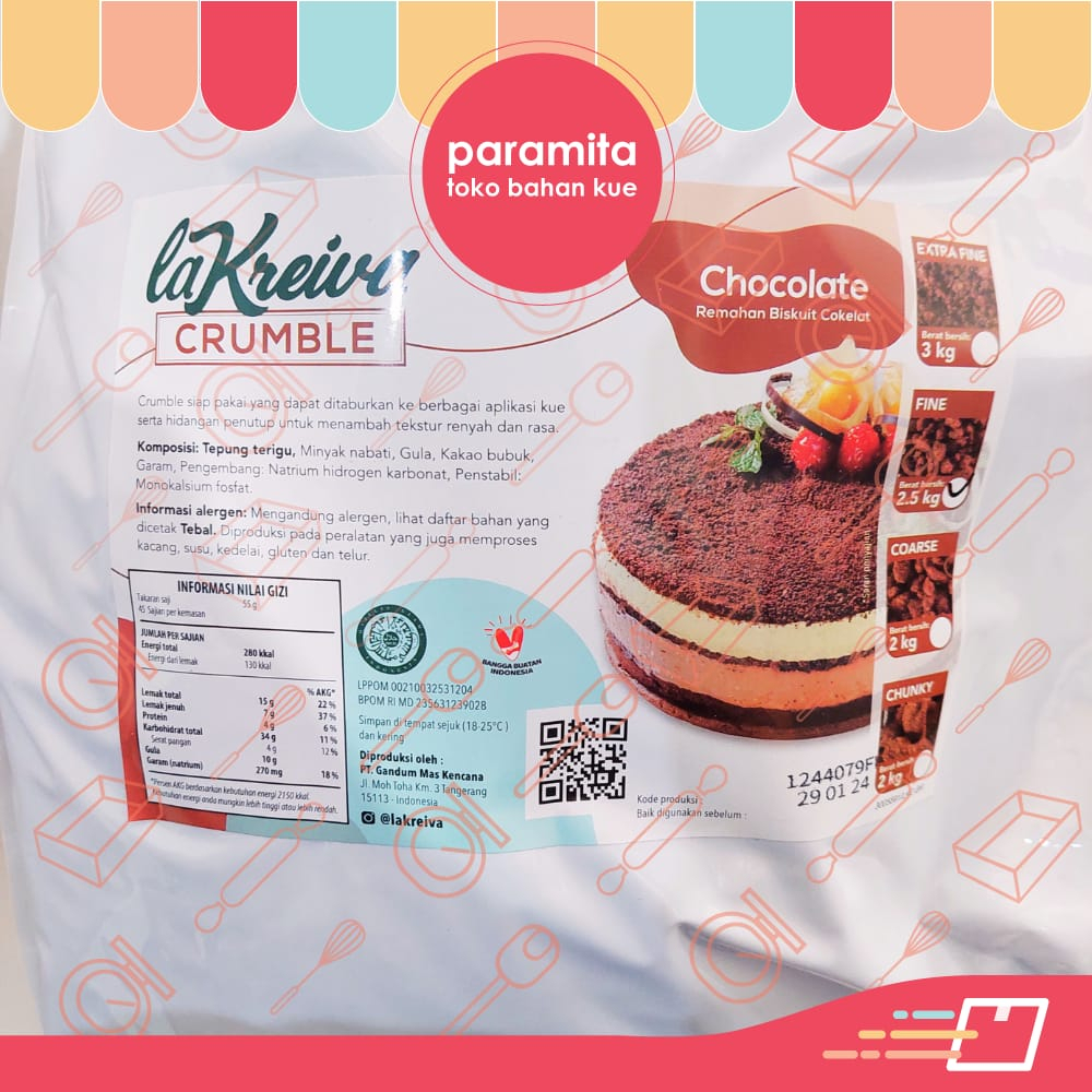 La Kreiva Crumble Red Velvet/Black/Matcha/Caramel/Coklat Repack 1kg