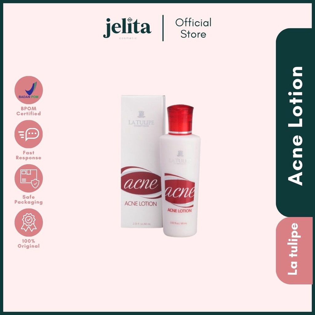 La Tulipe Acne Lotion Mengandung bahan pengelupas (bahan-bahan keratolitik: sulfur untuk antiseptik ringan & salicylic acid).