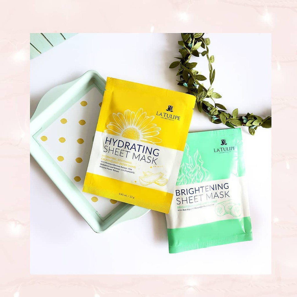 . Hydrating sheet mask: Masker wajah yang mengandung portulaca oleracea extract yang membantu menyejukkan kulit serta membantu menjaga kelembabab kulit. Diperkaya dengan aloe barbadensis leaf extract dan chamomilla recutita flower extract yang dikenal dapat membantu melembabkan kulit sehingga kulit terasa lembut, tampak lembab dan sehat. Harap diskusi terlebih dahulu mengenai stok dan varian yang tersedia