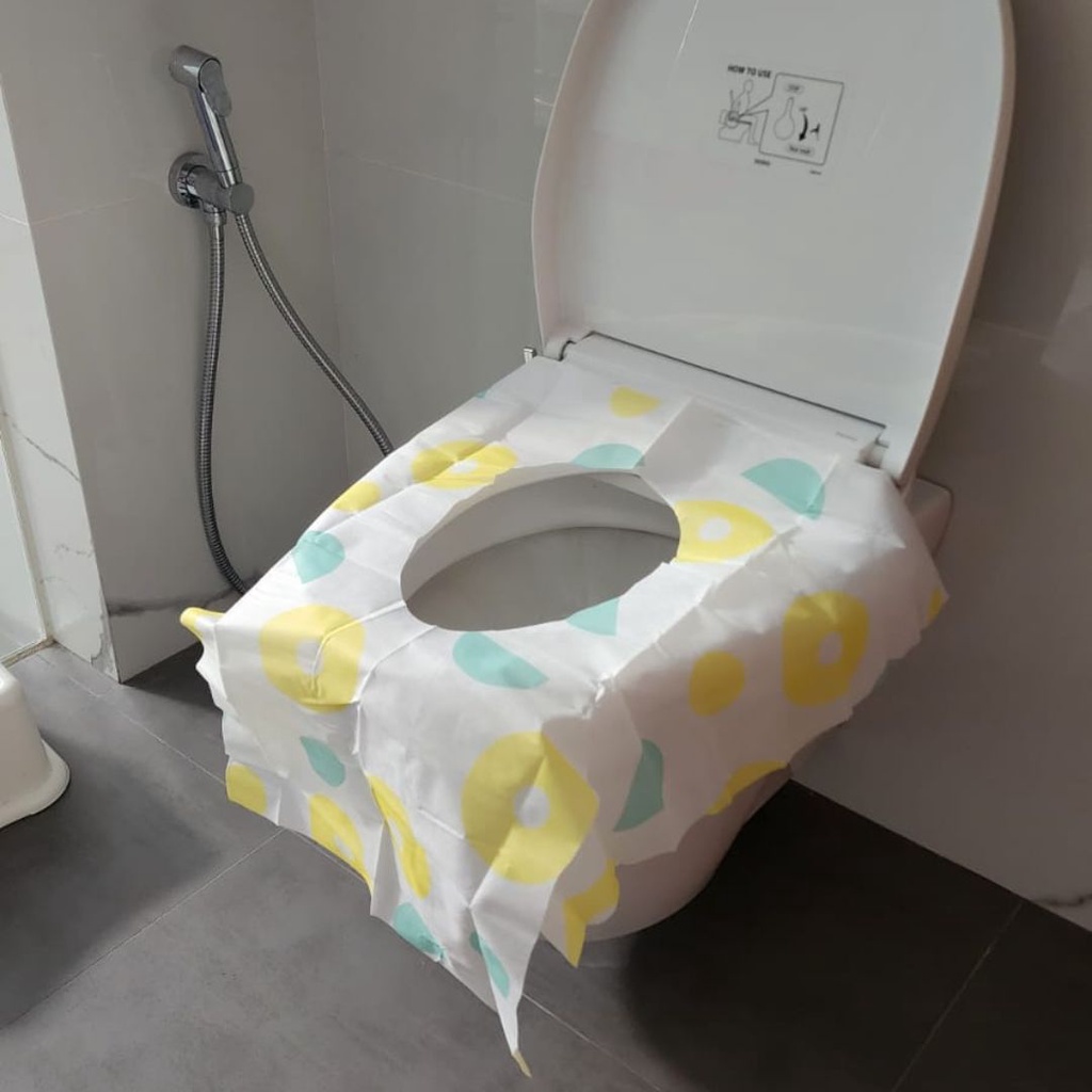 Cara penggunaan : Tempatkan tidy potty pada permukaan wc lalu rapihkan sampai semua bagian wc tertutup