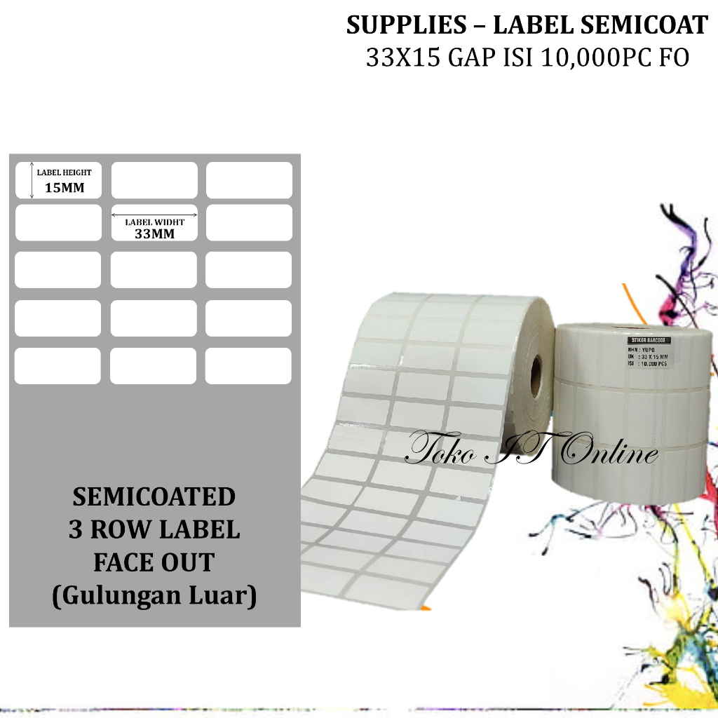LABEL BARCODE SEMICOATED 33x15 MM 3 LINE ISI 10,000 PCS LABEL STICKER BARANG TO PRINTER POSTEK