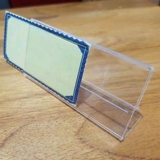 Detail Produk: Model : Display L Bahan : Acrylic Clear Marga Cipta(Bening) TEBAL : 2mm Ukuran : 3,5cm x 8,5cm
