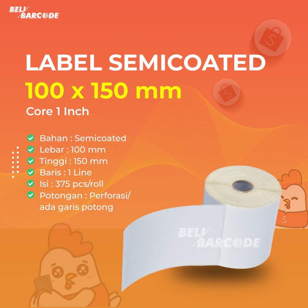 Informasi Produk : - Bahan : Semicoated - Lebar : 100 mm - Tinggi : 150 mm - Baris : 1 Line - Isi : 375 pcs / roll - Core : 1 Inch (Kecil) - Perforasi / Ada Garis Sobek - Gap Kanan Kiri Atas Bawah - Harga diatas tercantum untuk 1 Roll label - Berat diatas tercantum untuk 1 Roll label