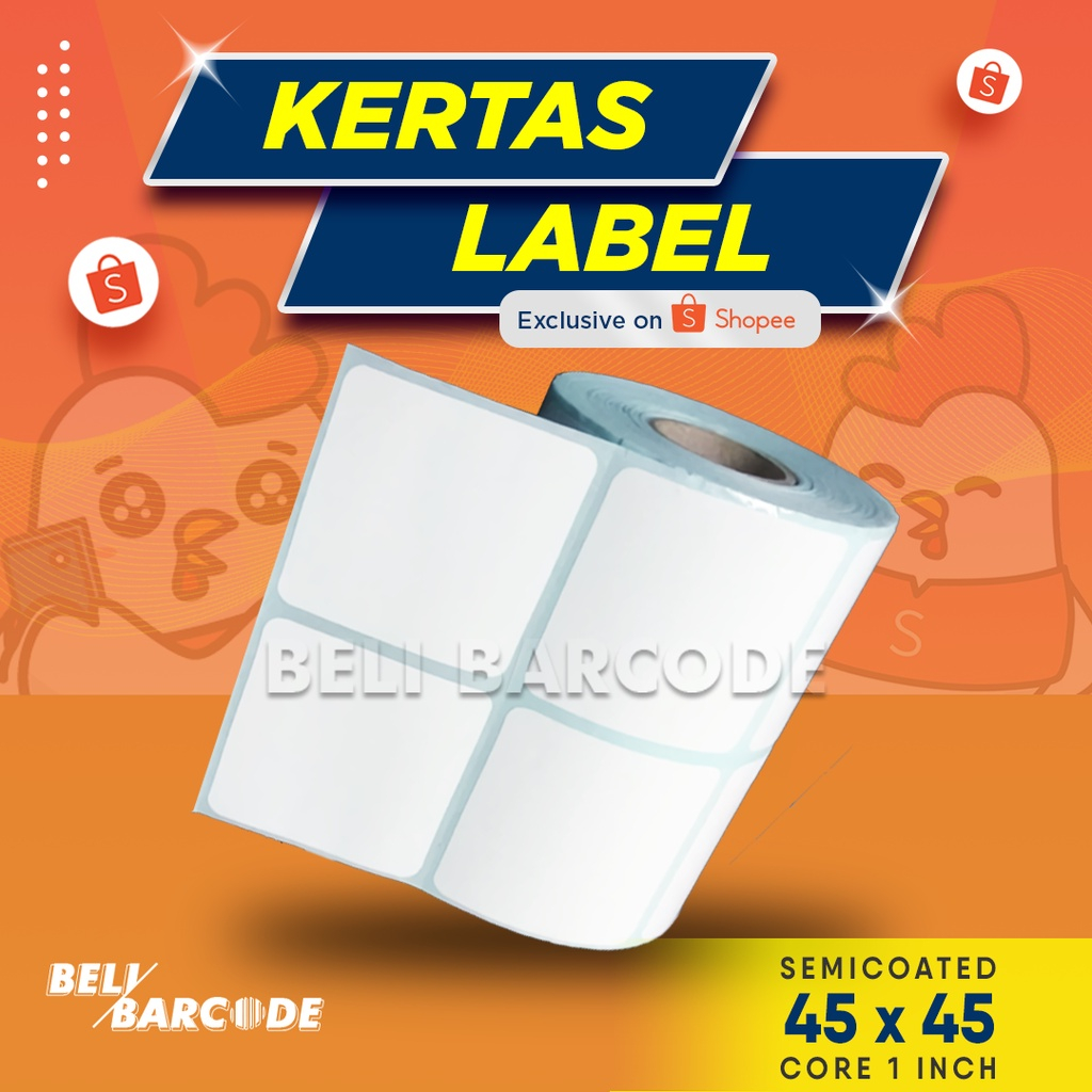 Informasi Produk : - Bahan : Semicoated - Lebar : 45 mm - Tinggi : 45 mm - Baris : 2 Line - Isi : 2.000 pcs / roll - Core : 1 Inch (Kecil) - Perforasi / Ada Garis Sobek - Gap Kanan Kiri Atas Bawah - Harga diatas tercantum untuk 1 Roll label - Berat diatas tercantum untuk 1 Roll label