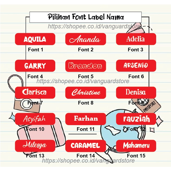 VARIAN UKURAN & ISI LABEL NAMA