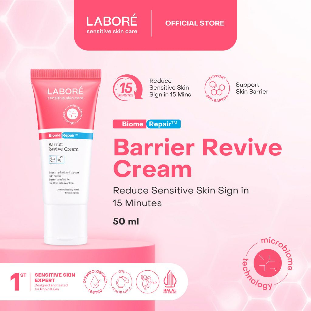 LABORÉ Sensitive Skin Care BiomeRepair Barrier Revive Cream adalah pelembap dengan kandungan Microbiome TechnologyTM dan Revive Complex yang melembabkan dan membantu meredakan gejala kulit sensitif* dalam 15 menit. Diformulasi secara khusus dengan tekstur krim yang dapat meningkatkan kelembaban kulit hingga +50%** sampai ke area terkering dan nyaman digunakan untuk kulit sensitif di negara tropis.