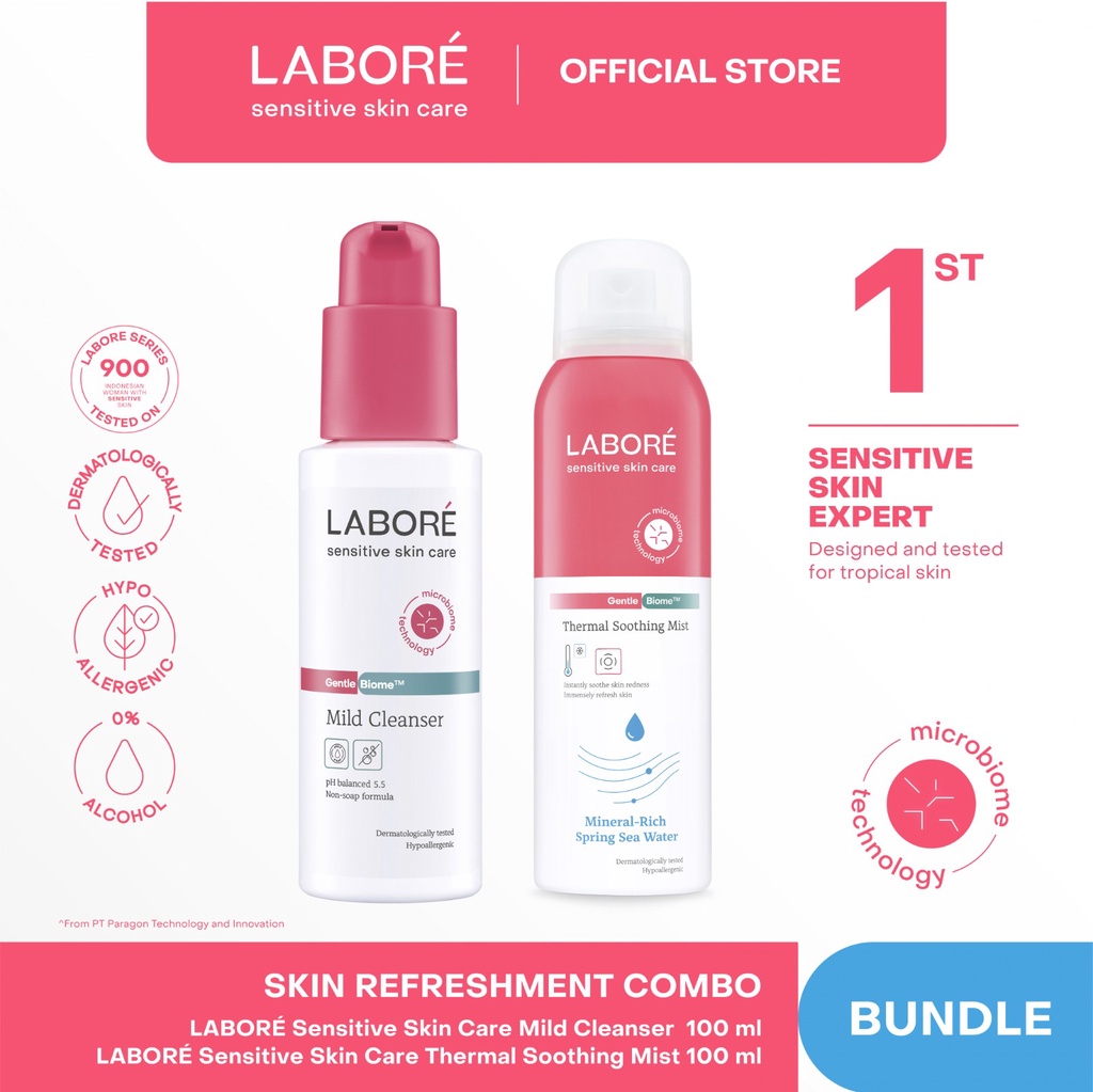 Paket ini terdiri dari : - LABORÉ Sensitive Skin Care GentleBiome Mild Cleanser 100 ml - LABORÉ Sensitive Skin Care GentleBiome Thermal Soothing Mist 100 ml