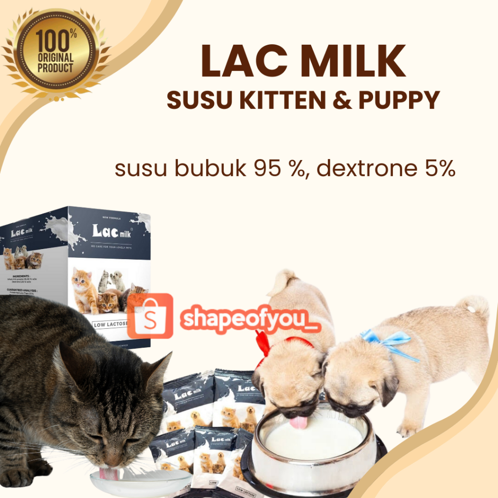 Susu Kucing Kitten Adult Lac Milk Low Lactose Nutrisi Vitamin Sachet . Frekuensi pemberian : * 0-2 minu : sestiap 2jam * 3-5 minu : setiap 3-4jam * 6 minu & lebih : kurangi pemberian susu, mulai diseimbangkan dgn makanan padat.