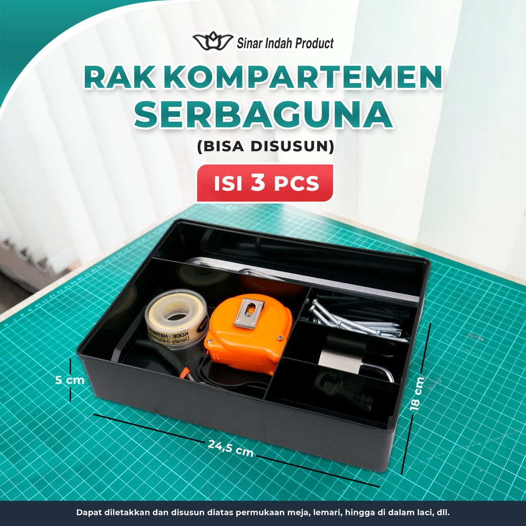 Bahan : Plastik Bisa disusun Bisa untuk simpan : - Kosmetik - Stationary / Alat Tulis - Obat-obatan - Sparepart Kecil/Barang Kecil - Perlengkapan Dapur (sendok garpu dll) - Perlengkapan Kamar Mandi - Dan Lain-lain sesuai kebutuhan