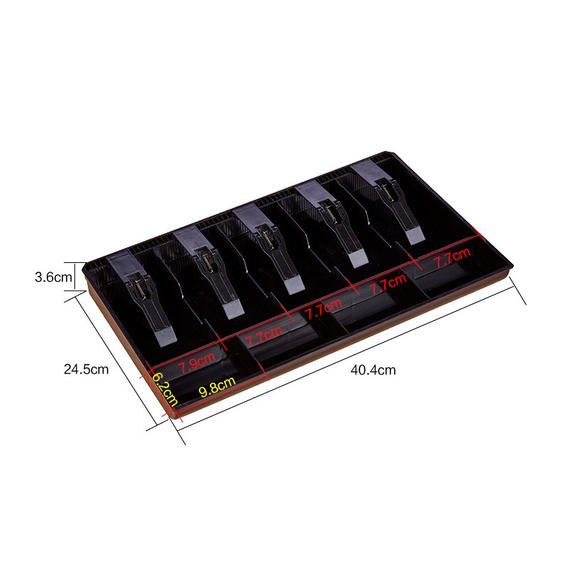 ✔Spesifikasi ●Bahan: Paket bahan baku ABS ●5Kisi Ukuran: 404 x 245 x 36mm ●4Kisi Ukuran: 330 x 245 x 36mm ●Warna: Hitam ●Paket termasuk: Laci Uang Kasir x 1