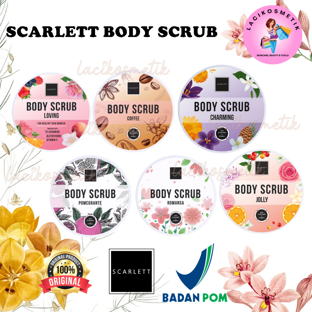 Detail ✨LACIKOSME✨ SCARLETT BODY SCRUB WITH GLUTATHIONE AND VITAMIN E / LULUR BADAN BPOM