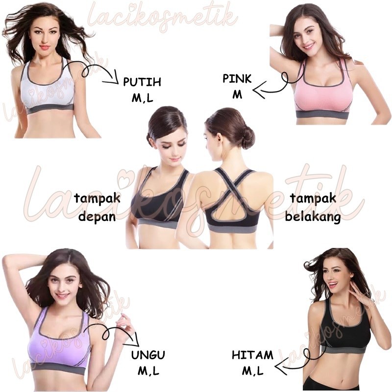Sport Bra Tali Silang Bra Sport Tali Silang sangat cocok digunakan untuk anda yang gemar olahraga karena saat berolahraga kita harus mengenakan pakaian yang nyaman termasuk pakaian dalam. Bra Sport Tali Silang terbuat dari bahan Nilon dan Spandek yang halus dan dapat menyerap keringat sehingga bisa bergerak dengan leluasa. Bra Sport Tali Silang dengan detail lining warna yang memberi aksen yang eye-catching, juga memiliki neckline berpotongan rendah.